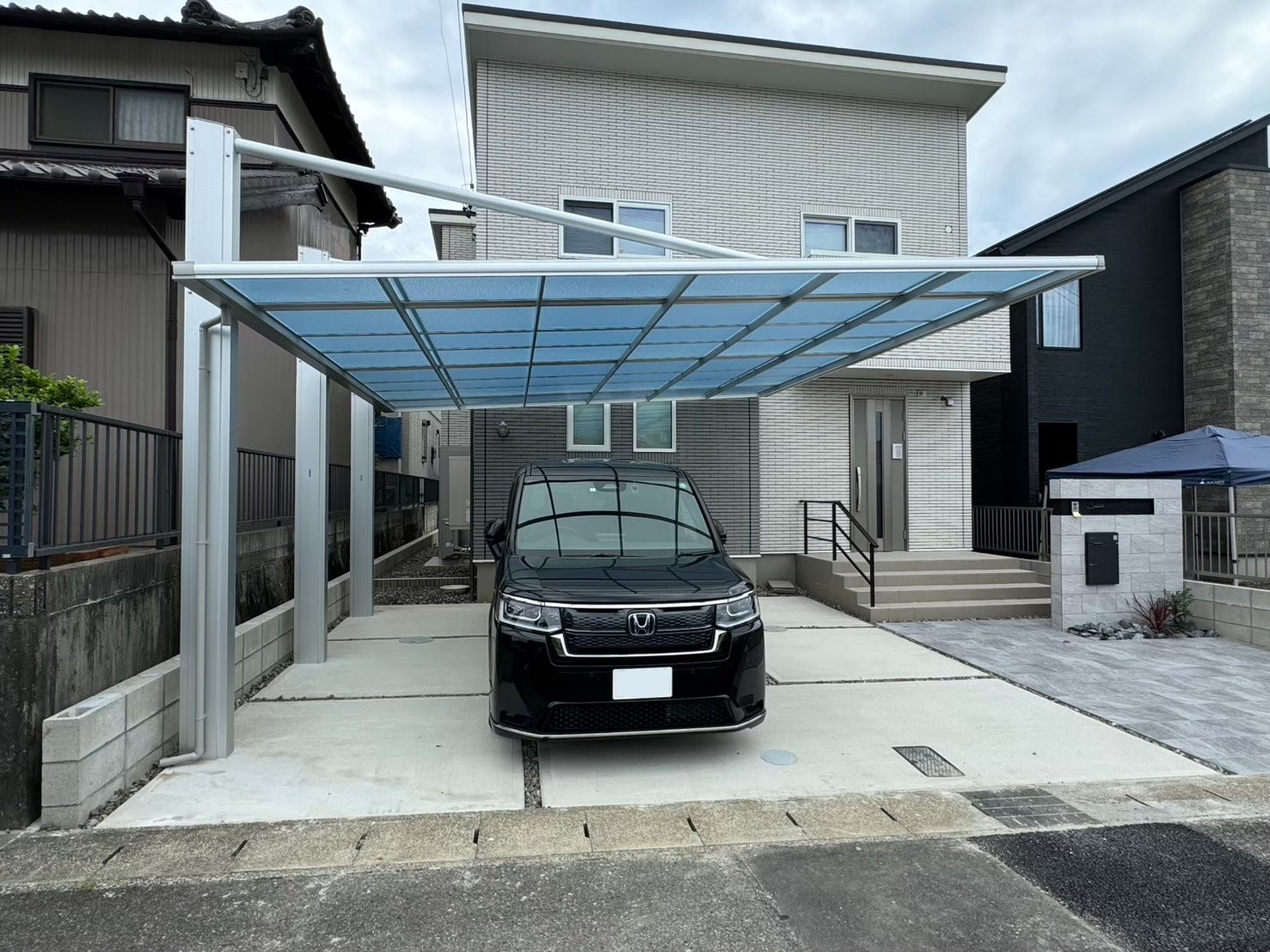 さて今回は片支持カーポート、三協アルミのダブルフェースの施工が完了しました✨
